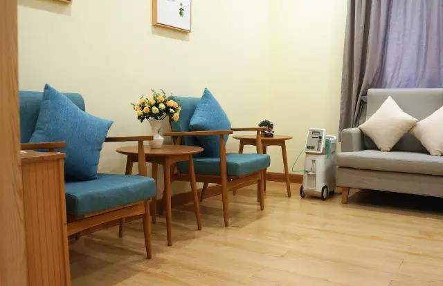日間照料區(qū)配置了適老化沙發(fā)茶幾組合,顏色清新素雅。