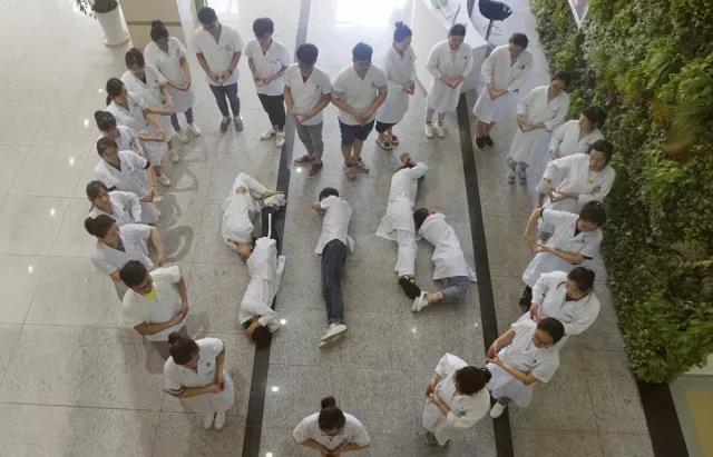 寧波江北康養(yǎng)醫(yī)院的醫(yī)護人員搭出了佰仁堂的標志——銀杏葉