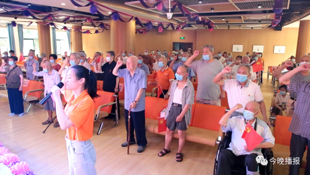 7.1日是中國共產(chǎn)黨成立 99 周年紀(jì)念日,上午,在佰仁堂·義烏怡樂新村一樓多功能大廳里,近百名老黨員高舉右手莊嚴(yán)宣誓,重溫入黨誓詞,深切感受著黨員的責(zé)任、使命和榮耀?;顒?dòng)現(xiàn)場,近百名老黨員們都胸前佩戴黨徽肅穆站立,舉起右手莊嚴(yán)地重溫入黨誓詞。