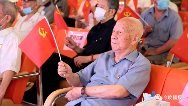 入黨誓詞喚起了大家入黨時(shí)的初心和理想,今年 87 歲的老黨員樓建偉還上臺(tái)和大家分享了自己的入黨故事?;貞浧鹱约喝朦h經(jīng)歷時(shí),樓老洪亮的聲音里充滿著自豪。